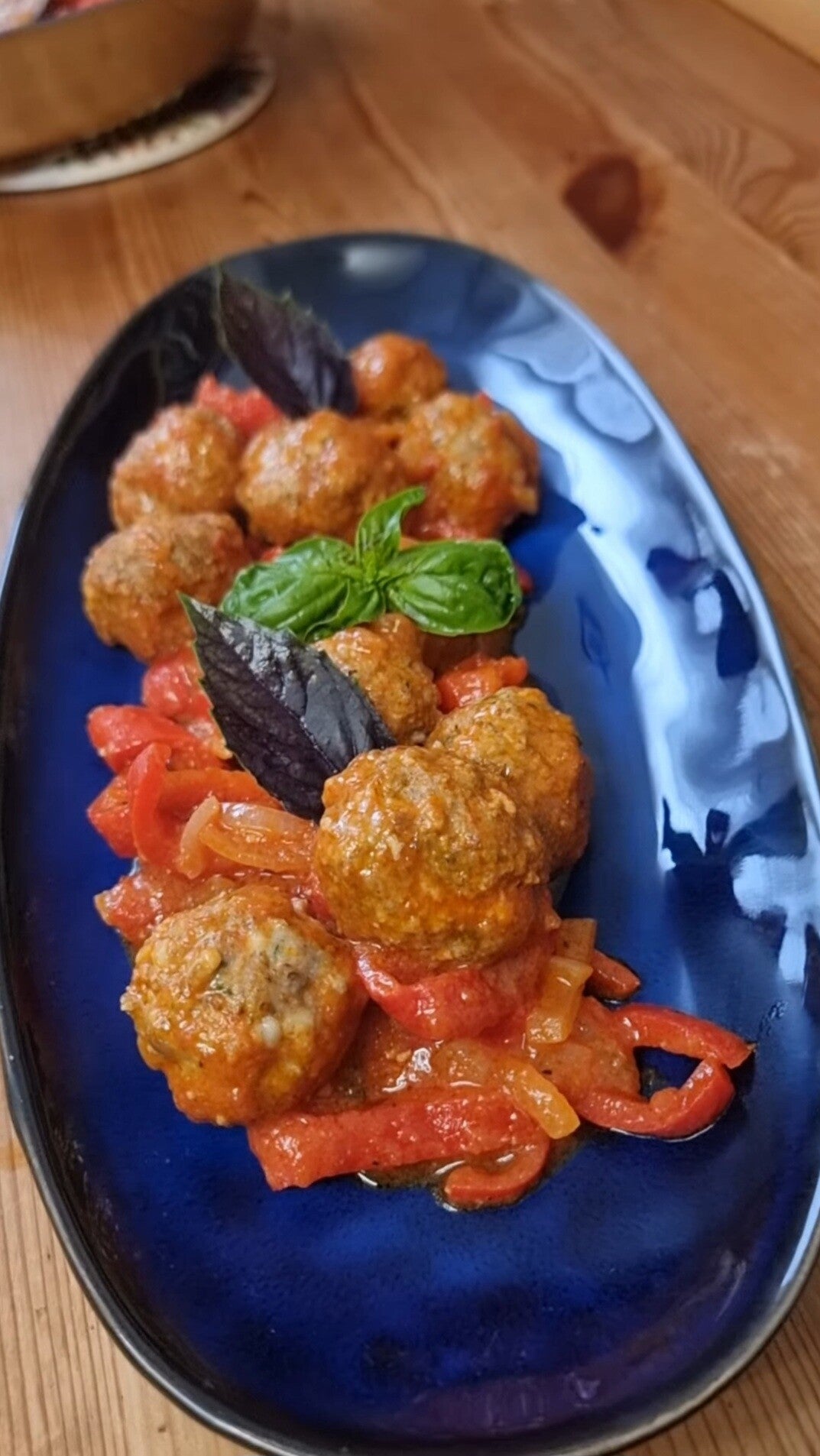 Le polpettine sono pronte per essere servite belle calde e appetitose, decoratele con foglie di basilico fresco per esaltare ancora di più il sapore.